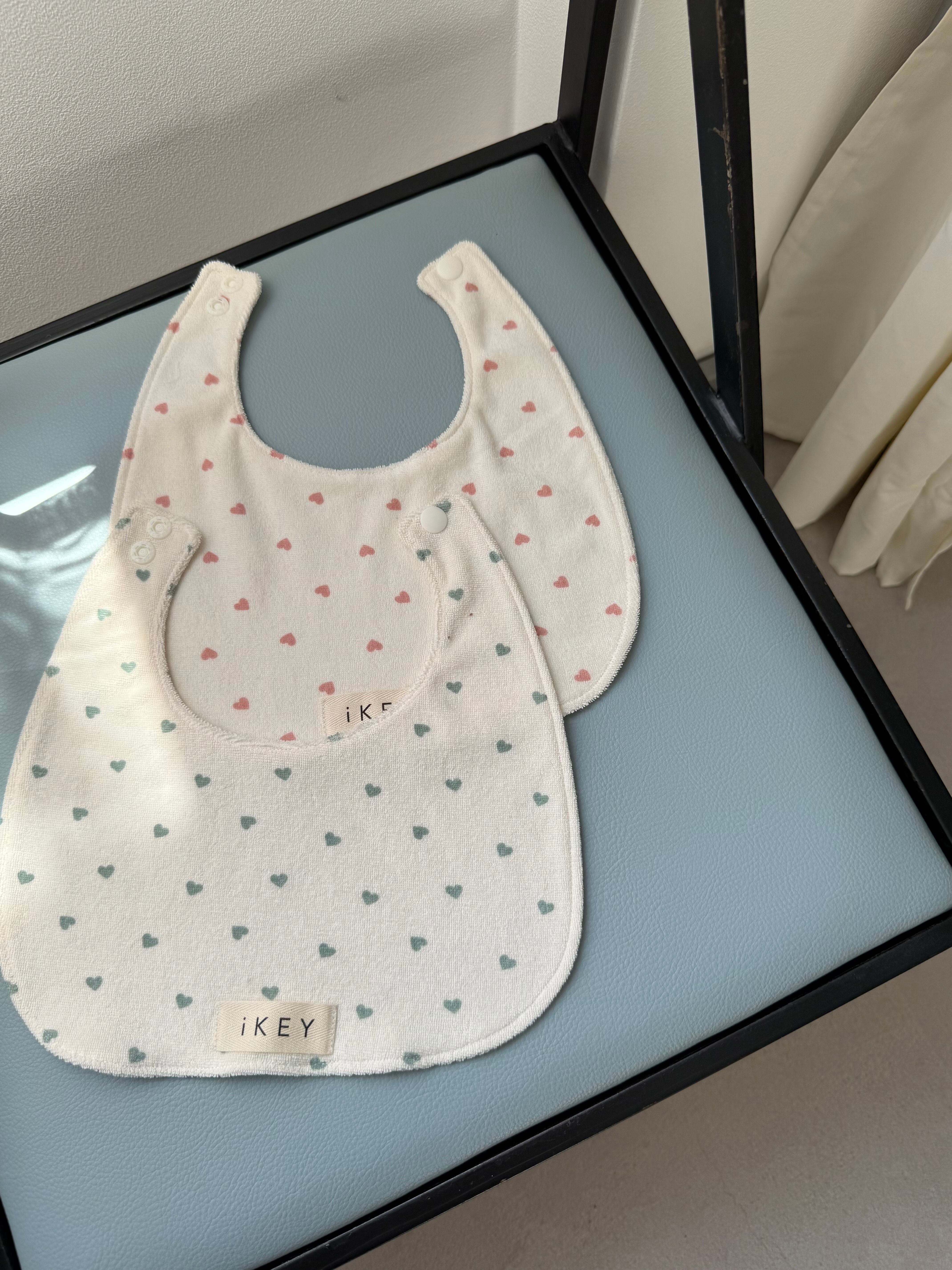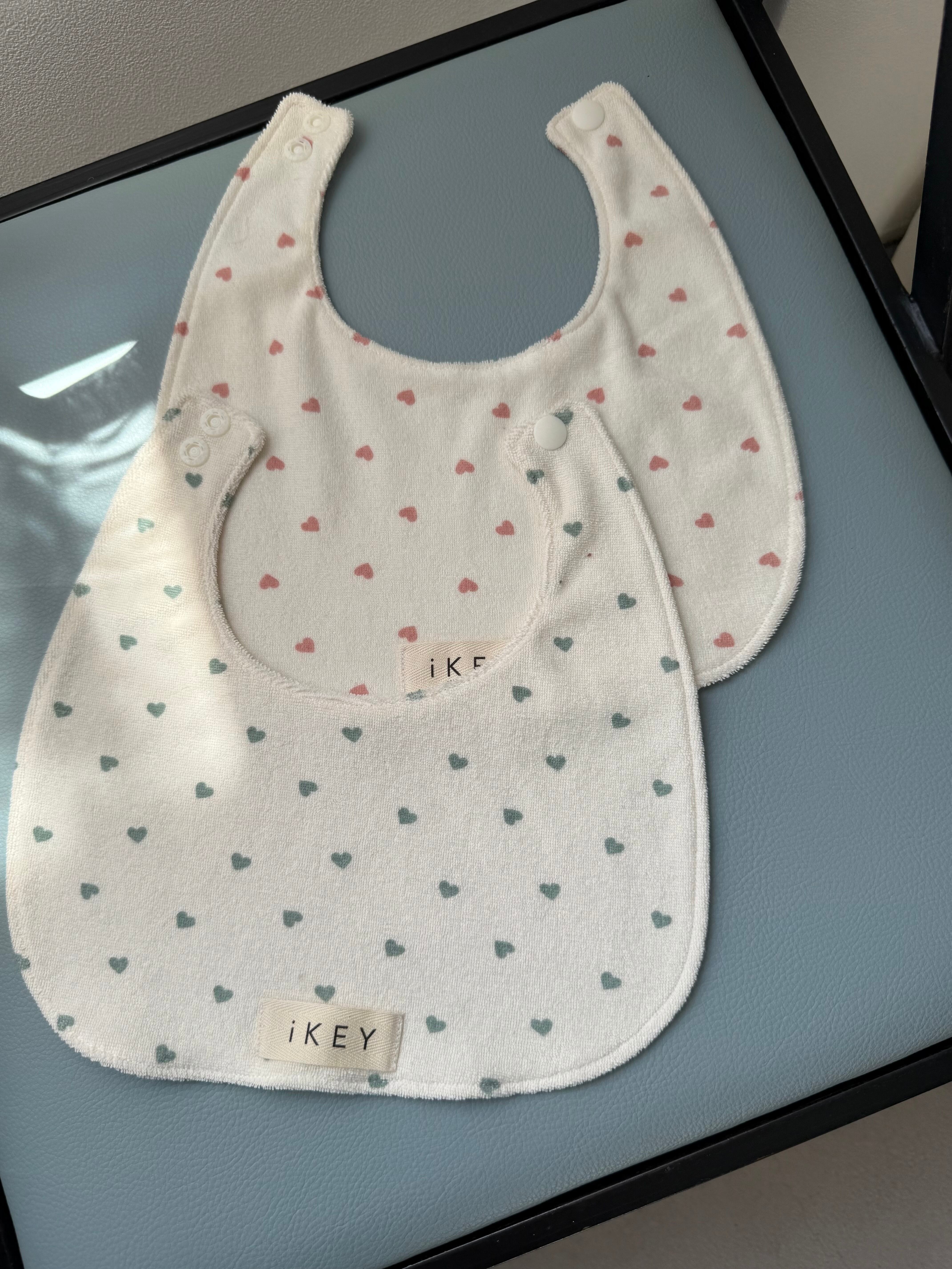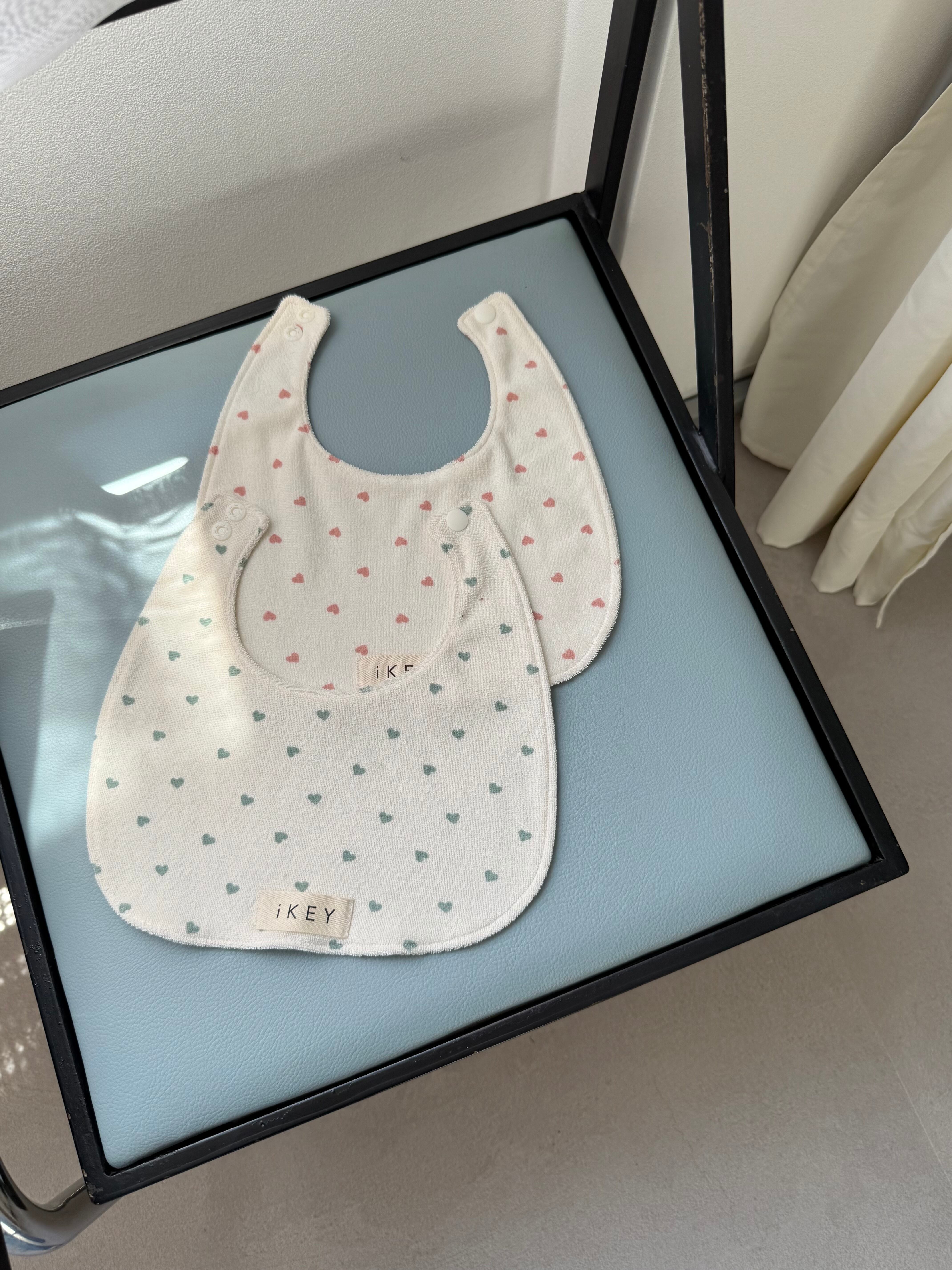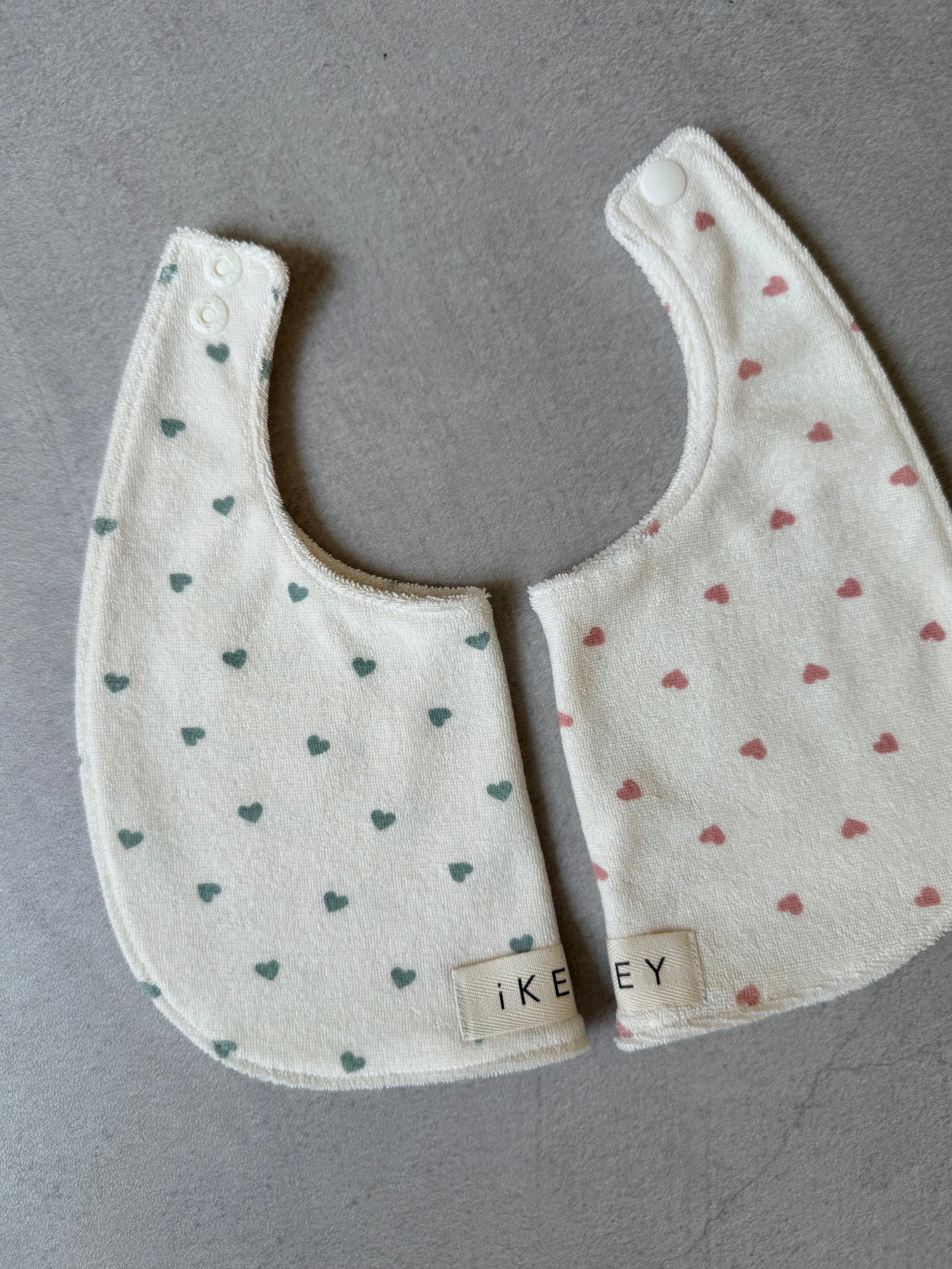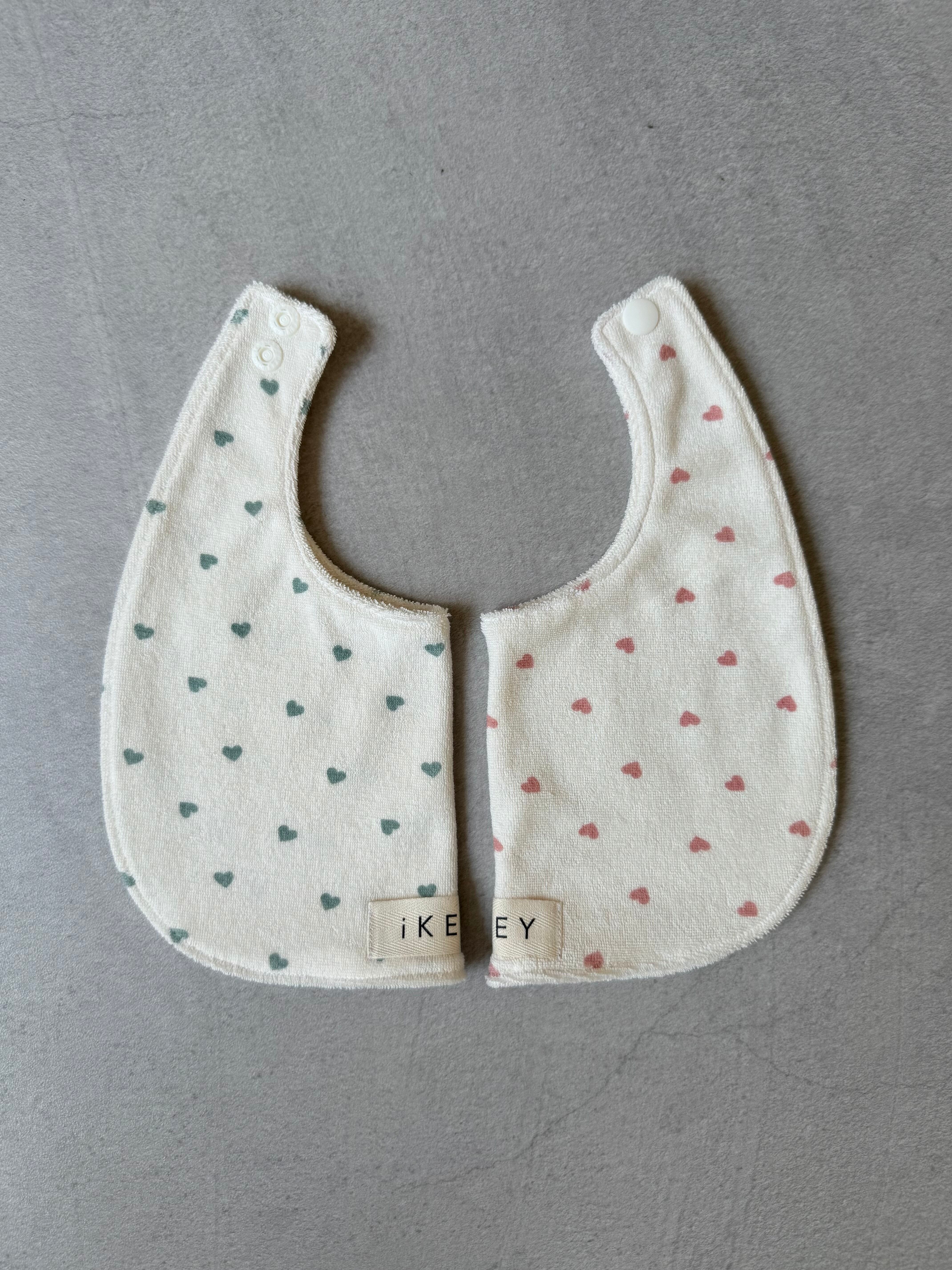 かわいいがギュッと詰まったハート柄のスタイ。
